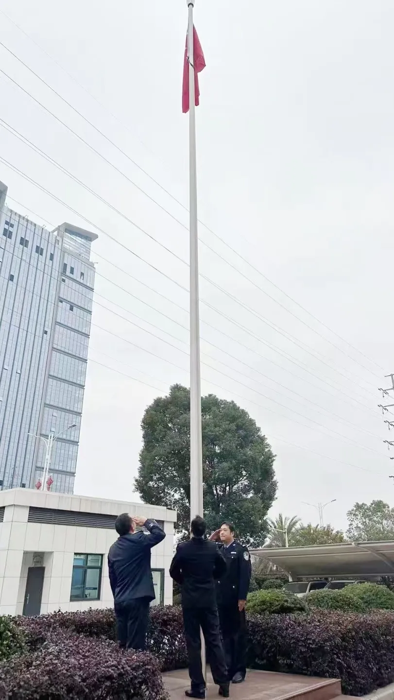 上午8:18分,升旗仪式正式开始。伴随着激昂雄壮的《义勇军进行曲》,鲜艳的五星红旗冉冉升起,全体检察人员整齐列队、精神抖擞、庄严肃立,向国旗行注目礼。