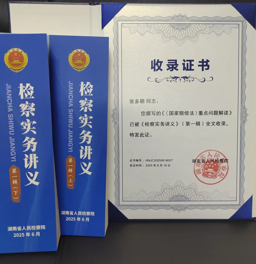 雁峰区人民检察院第三检察部主任张多朝撰写的《<国家赔偿法>重点问题解读》被湖南省人民检察院《检察实务讲义》(第一辑)全文收录。